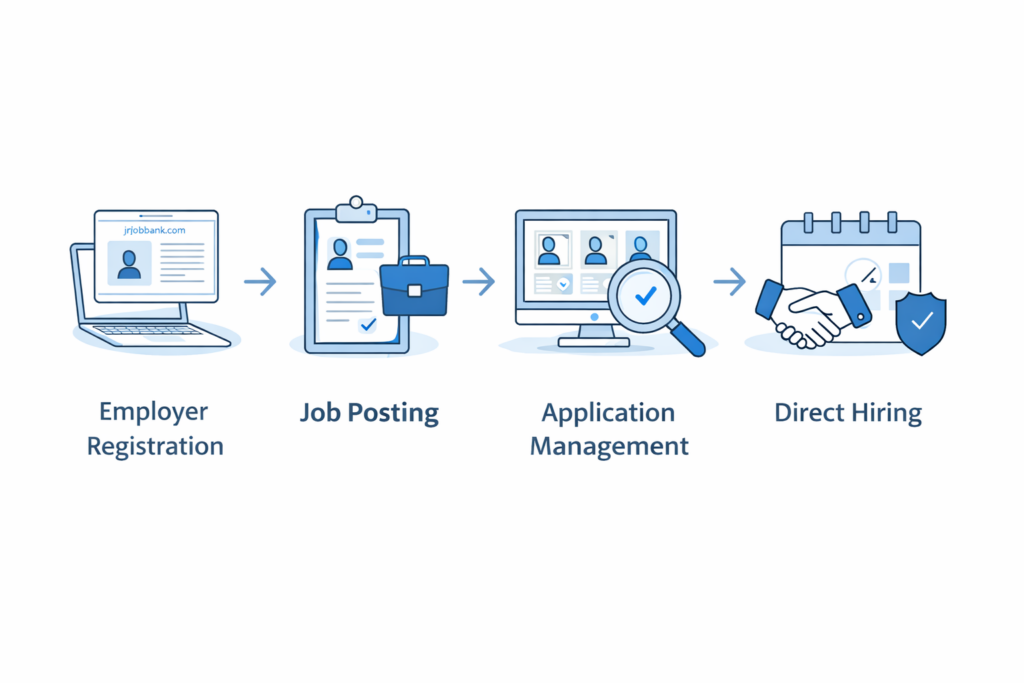 Register a corporate account on JRFJobBank.com or contact us for guidance.